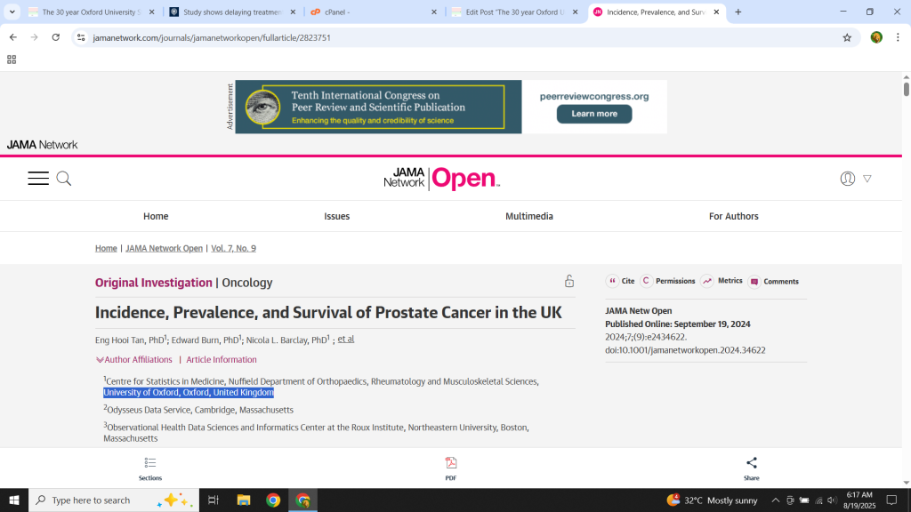 Oxford University in England, is the oldest and arguably the most well-respected University on Earth. This 30 year Oxford University Study reports out in 2023 after 15 years. It examines 1,500 men with localized prostate cancer who take 3 distinct paths. 1) Prostate removal, 2) Radiation therapy, and 3) Active Surveillance (watchful waiting).