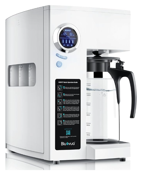 I have since learned that some chemicals are not removed by distillation alone. This is because the vaporizing point of some undesirable substances sits below the boiling point of water and therefore do end up in distilled water. A more complete water cleansing solution requires that I pass the water through a reverse osmosis (RO) process first, then distill it. One RO machine that has been researched by a family member is the Bluevua RO100ROPOT Reverse Osmosis System Countertop, and I now use this one.