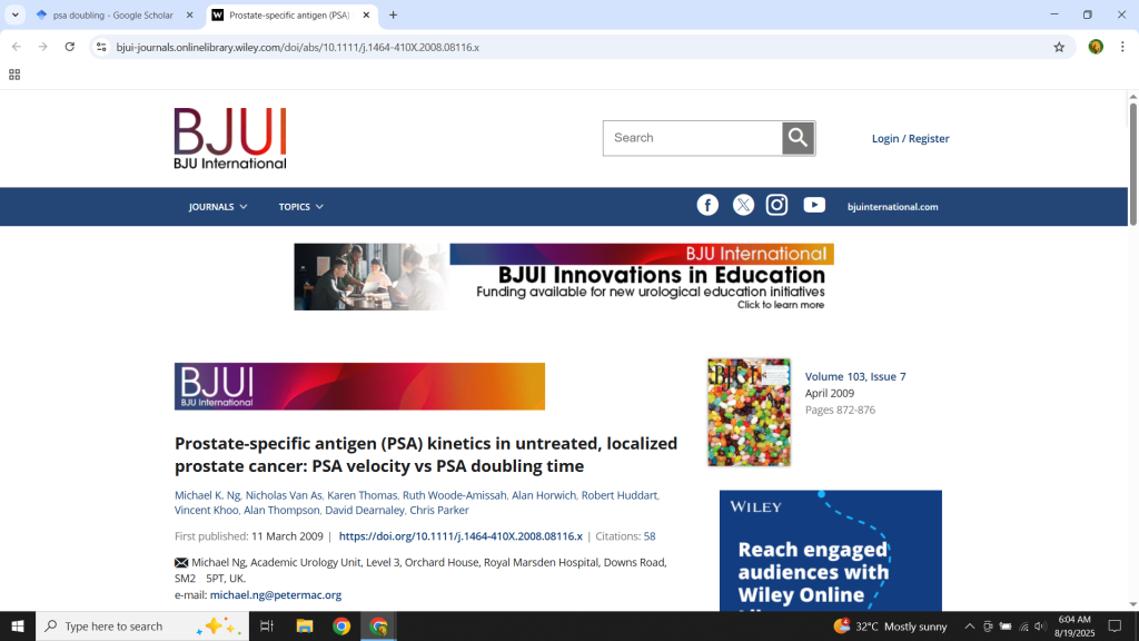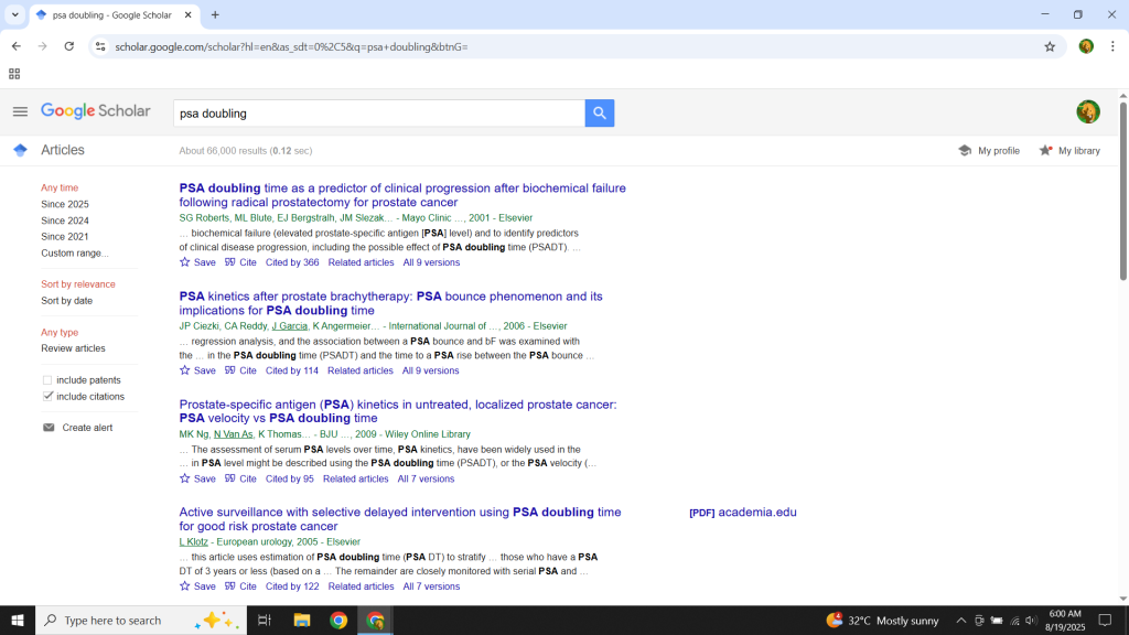 Remember from elsewhere on this site, or see for the first time, the results from a Google Scholar search about PSA doubling: